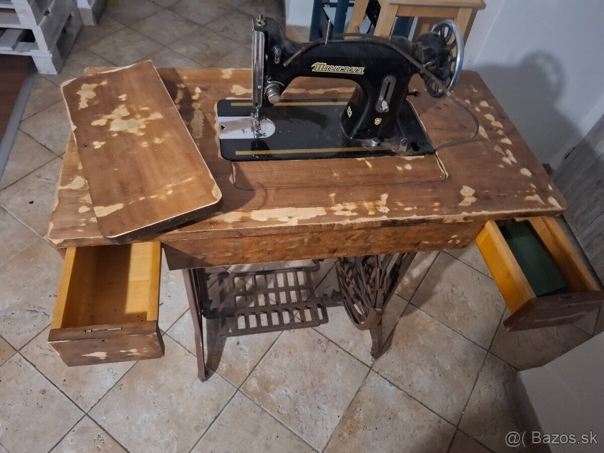 Predám starý nožný šijací stroj na liatinovej konštrukcii.