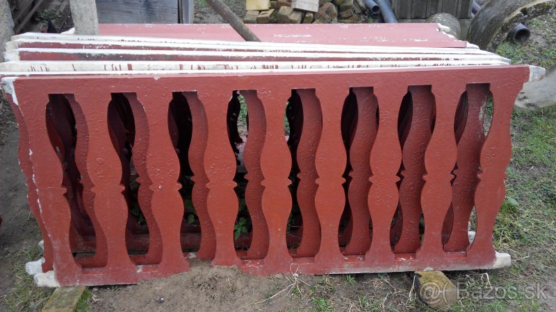 Klobuky (striesky) o rozmeroch 39x39x2.5 cm - ks/3e-14ks, dvojbruskove balustrady o rozmeroch=foto, cize jeden dielec tak ako je na foto komplet 2 m 30e/1ks.Tieto dielce mam 13ks.