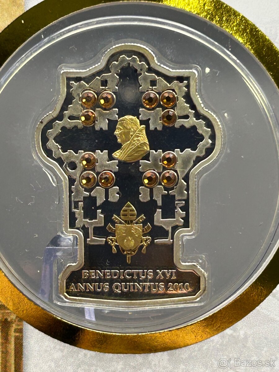 Cookove ostrovy - 5 dolárová strieborná minca s kryštálmi Swarovski + zlatá aplikácia / 5. výročie pápežských volieb / Numiscover