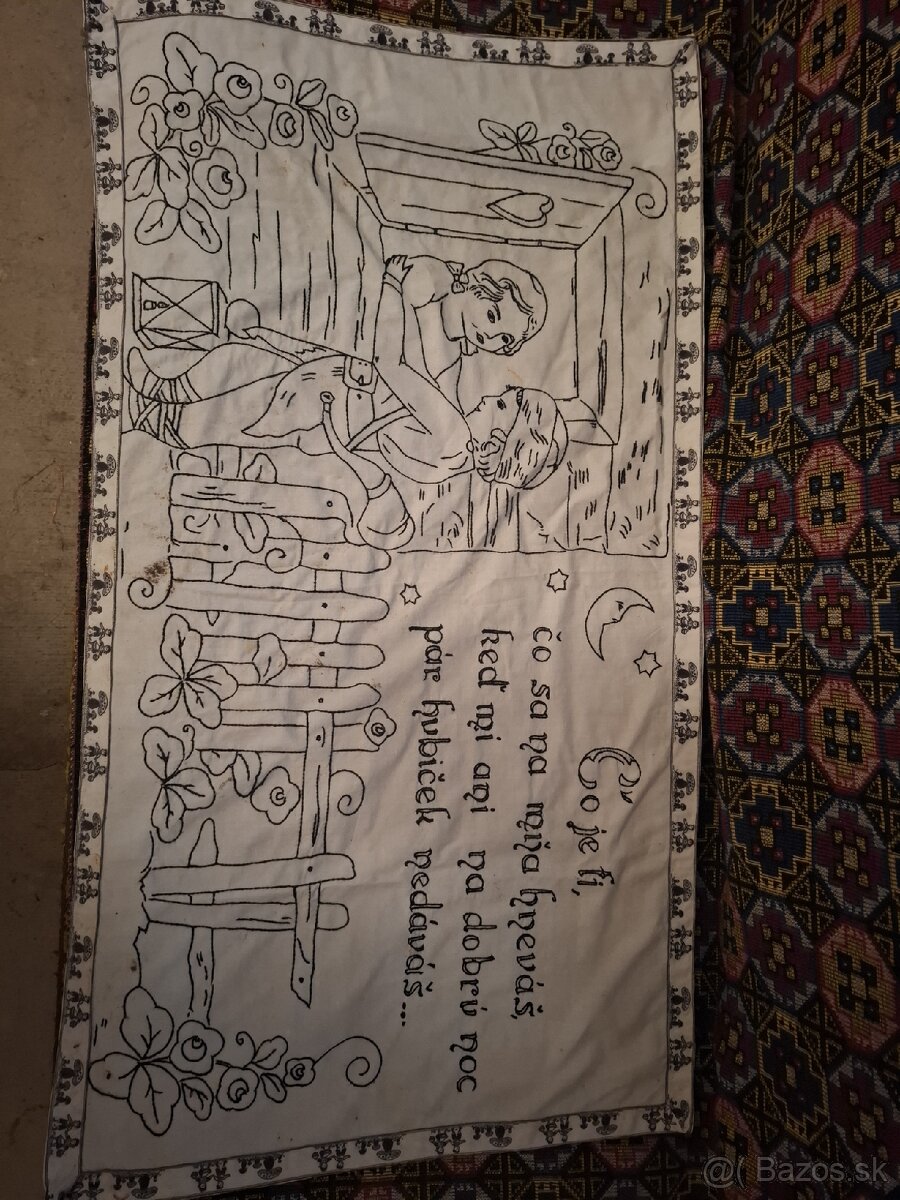 Ponúkam na predaj dva originálne kusy tradičných ručne vyšívaných textílií, pochádzajúcich z vidieckeho prostredia. Ide o autentické dekorácie, ktoré kedysi zdobili kuchyne a spálne slovenských domácností – ideálne pre milovníkov folklóru, vintage štýlu alebo na zberateľské účely.