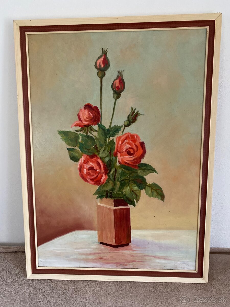 Predám olejomaľbu - ruže vo váze. Obraz je zarámovany a bez poškodenia. Viac informácií na emaily alebo telefónnom čísle. Rozmery sú na fotke. Po dohode viem poslať cez packetu alebo postu.