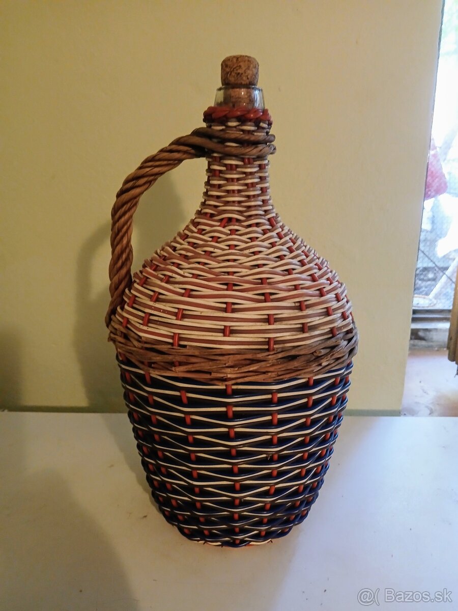 Na predaj je plátený( vnútri čistý,)5,5 Litrový demižón na destiláty za 10 eur a päť kusov 5 litrových neplátených za 4 eurá/kus.