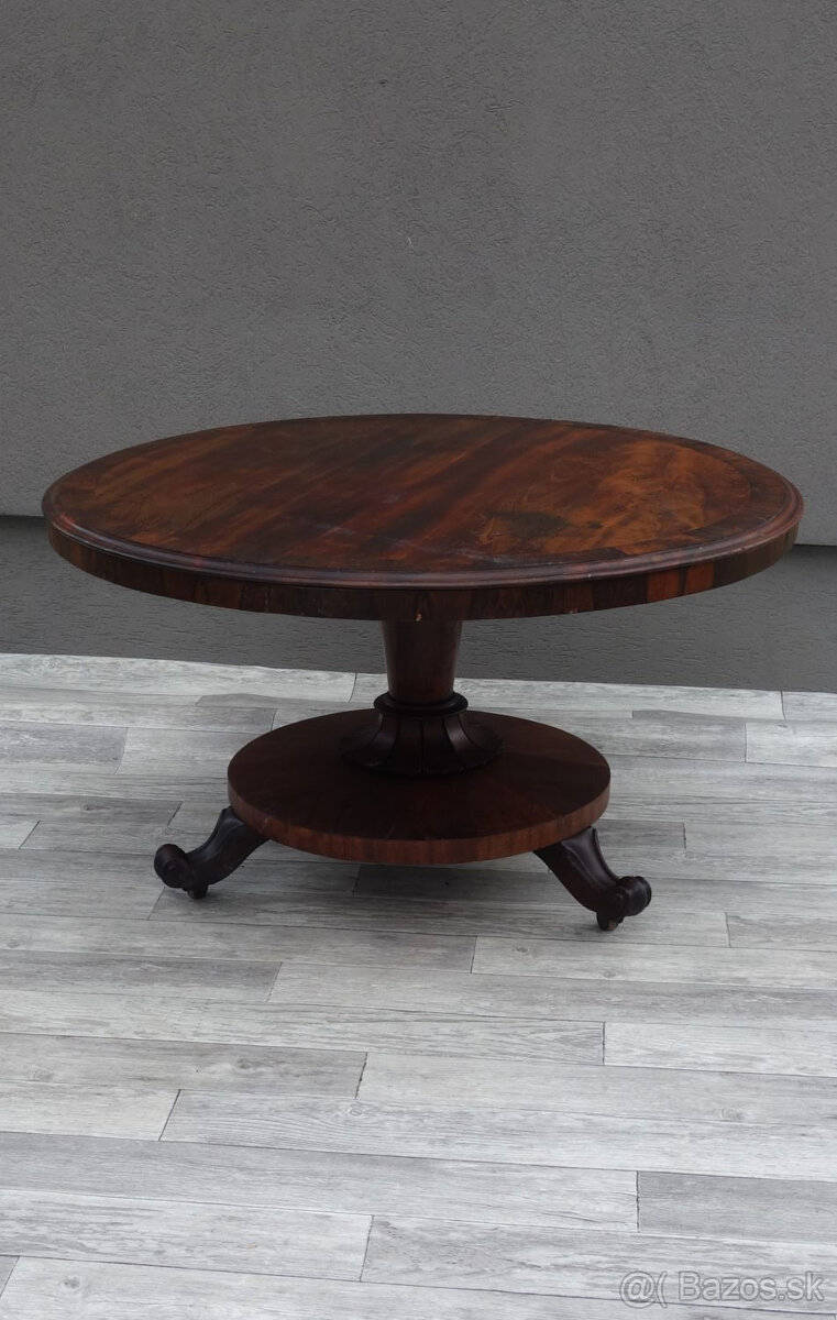 Tento drevený okrúhly jedálenský stôl má dominantnú stĺpovú základňu pripomínajúcu piedestál. Stĺpová noha tohto stola je vyrobená z masívneho dreva a je krásne vyrezávaná , čo robí tento jedálenský stôl výnimočným. Ide o veľký jedálenský okrúhly stôl, za ktorým sa pohodlne usadí do 6 osôb. S týmto stolom si vytvoríte harmonickú atmosféru vášho domova. Stôl disponuje kolieskami . Výška – 74 cm , priemer – 130 cm .Dovoz Holandsko. Dovoz až k Vám domov viem v rámci Slovenska zabezpečiť po dohovore zadarmo . Pozrite všetky moje inzeráty možno zaujme aj niečo iné. Uprednostňujem telefonický kontakt pred sms a emailmi. Všetko je o dohode .