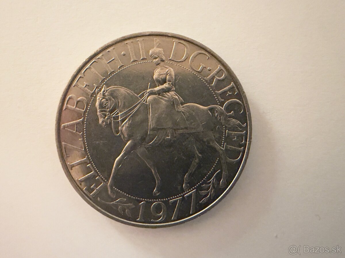 Ponúkam na predaj britskú mincu nominálnej hodnoty 25 pence z roku 1977 vydanú na počesť 25. výročia kráľovnej Alžbety II. na tróne, tzv. Silver Jubilee coin. Iba osobný odber v rámci BA!