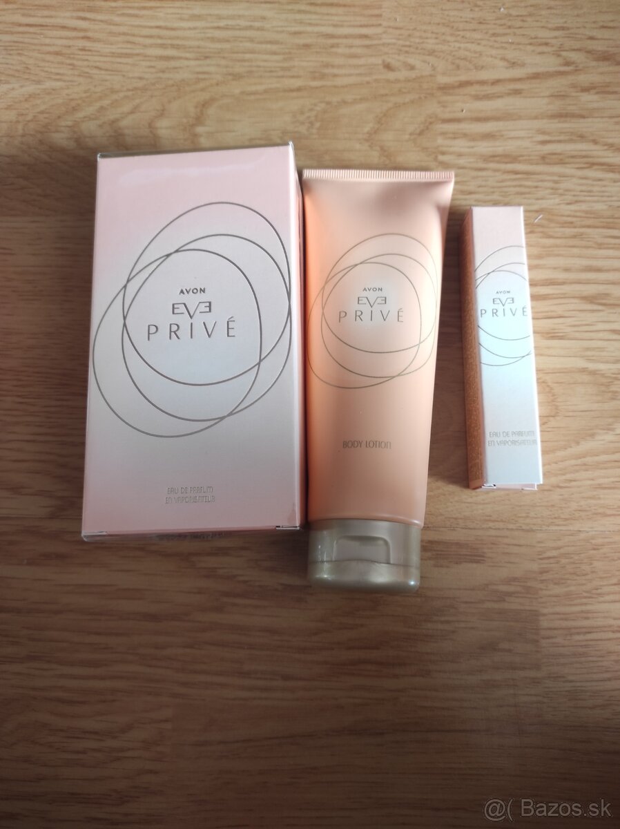 Eve Privé - Avon - [5.12. 2025]Predám nové zabalené neskúšané dámske vonavky z Avonu - Eve Privé. Objem 50 ml. Pôvodná cena - 24,9 eur, moja cena za kus - 9,5 eur. Pošlem poštou alebo osobne možno prevziať v Kremnici, ZH, ZV, BB, RK, MI, PO