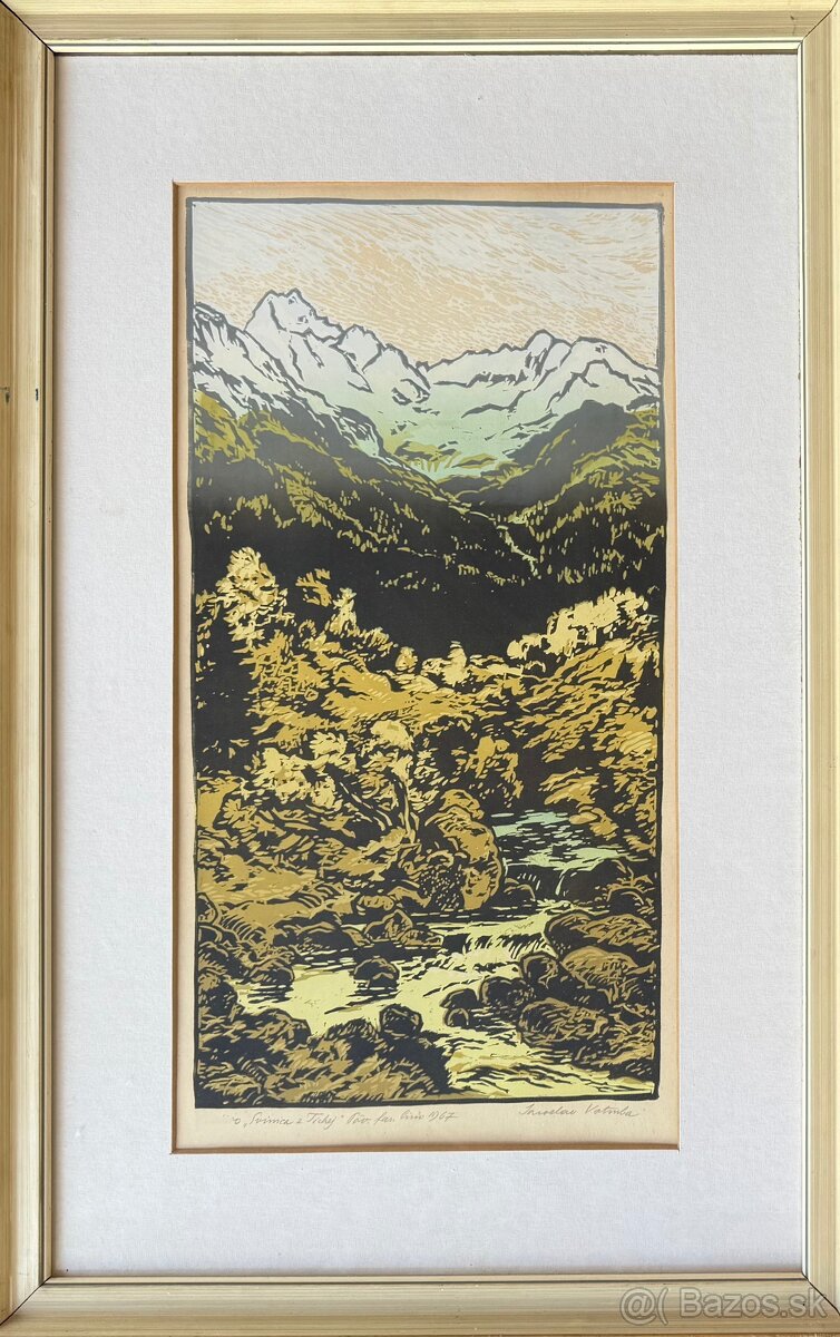 Jaroslav Votruba , farebné lino na papieri , 53x28 cm , r.1967 , znač. vľavo dole.