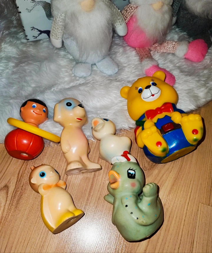 Retro piskajuce gumené hračky