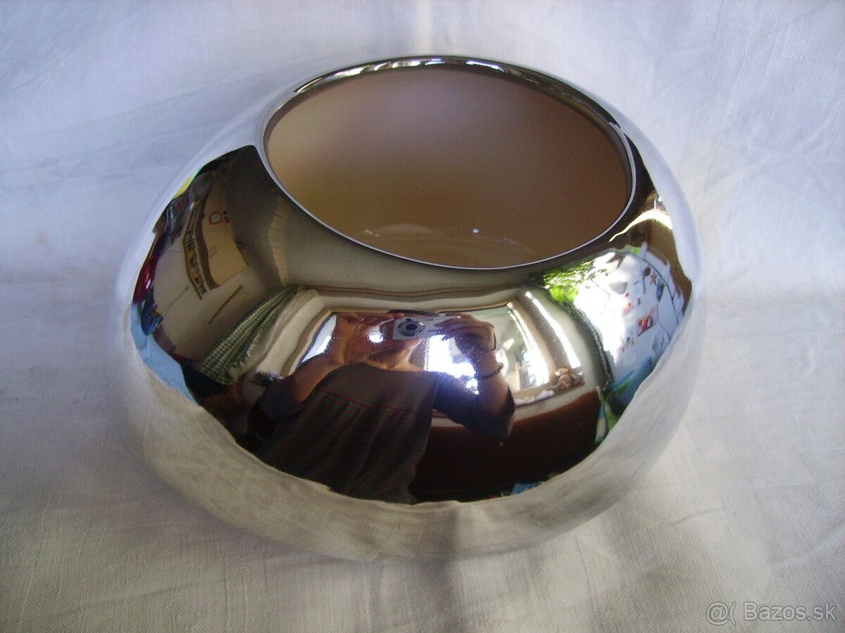 Predám striebornú glazovanú keramickú misu, ktorá môže slúžiť aj ako kvetináč / črepník na izbové rastliny. Je v nepoužívanom a neporušenom stave, moderný minimalistický vzhľad. Vnútri telová farba glazúry. Výška 12 cm, dĺžka 21 cm, šírka 18 cm.