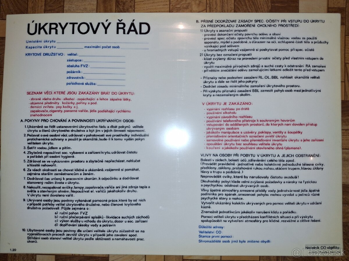 Plastová tabuľa - úkrytový poriadok