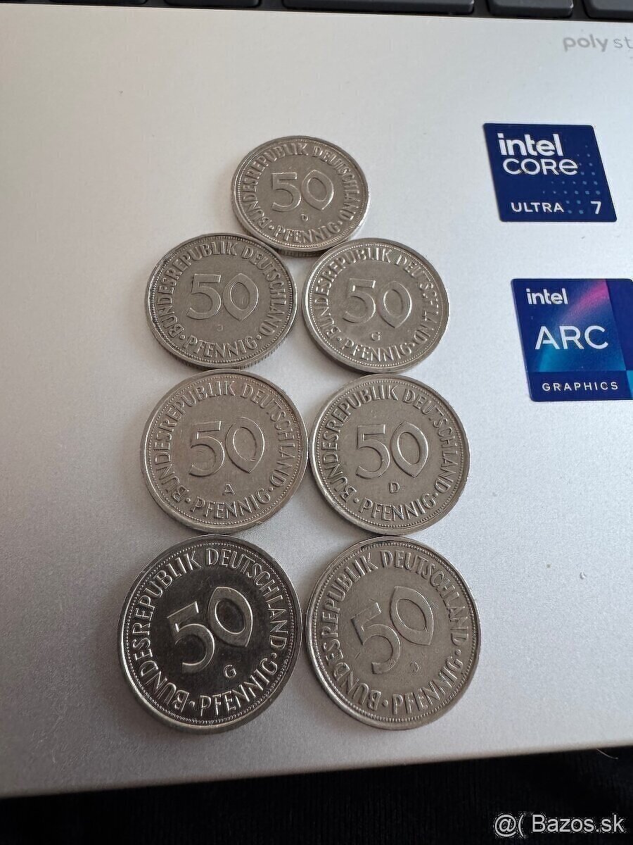 Nemecko - 50 Pfennig 7 ks : 1950, 1966, 1979, 1990, 1992.