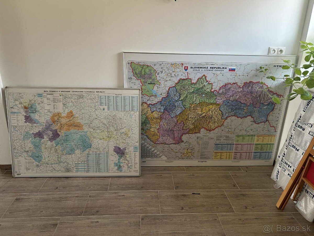 Pevné hliníkové nástenné mapy Slovenska dva kusy, väčšía má rozmer 160x116 , menšia má rozmer 120x86 cena 9€ za obe. Len osobný odber.