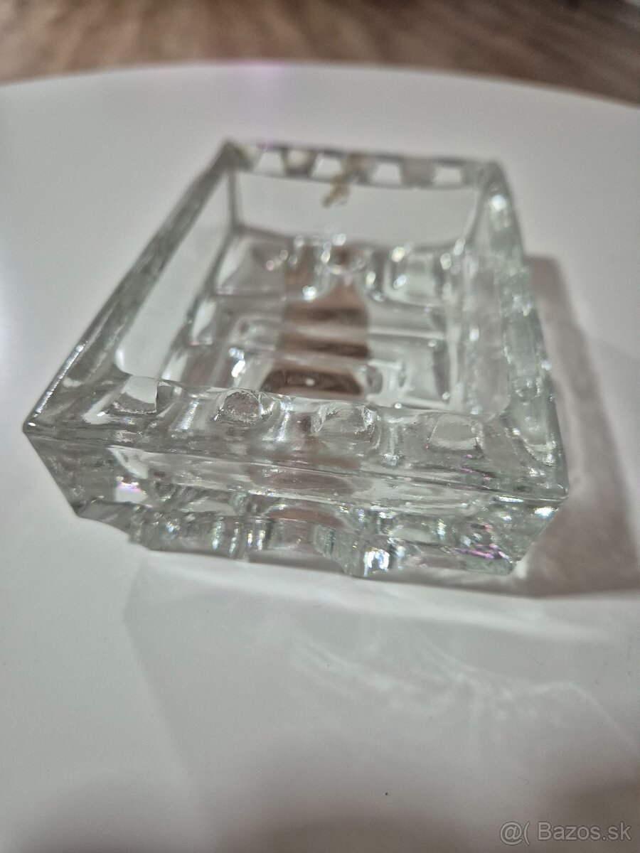 Popelník z lisovaného skla bludište dle autorského návrhu Vladislava Urbana, sklárna Rosice, r. 1968.