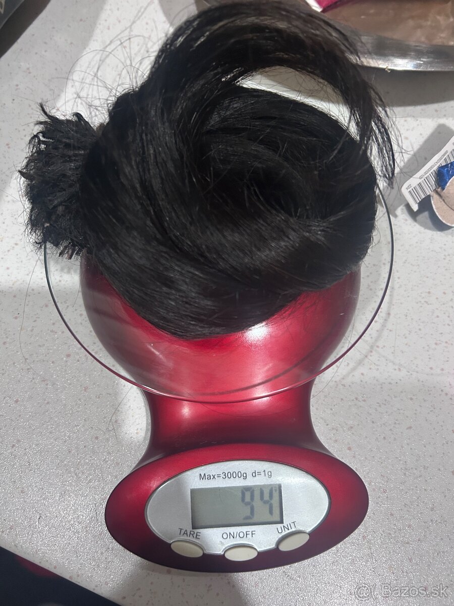 Vlasy - [17.11. 2025]Na predaj krasne ruske vlasy - tmavohneda/cierna, kupovane v Bratislave v kamenn.predajni nove za 300€. Su stale velmi kvalitne, leskle a maju neskutocny objem. Mala som ich pol roka na zahustenie. Su zostrihane, ale vsetky plus minus 32 az 34cm vid.foto. pridala som aj foto pre predstavu ako vyzera ...