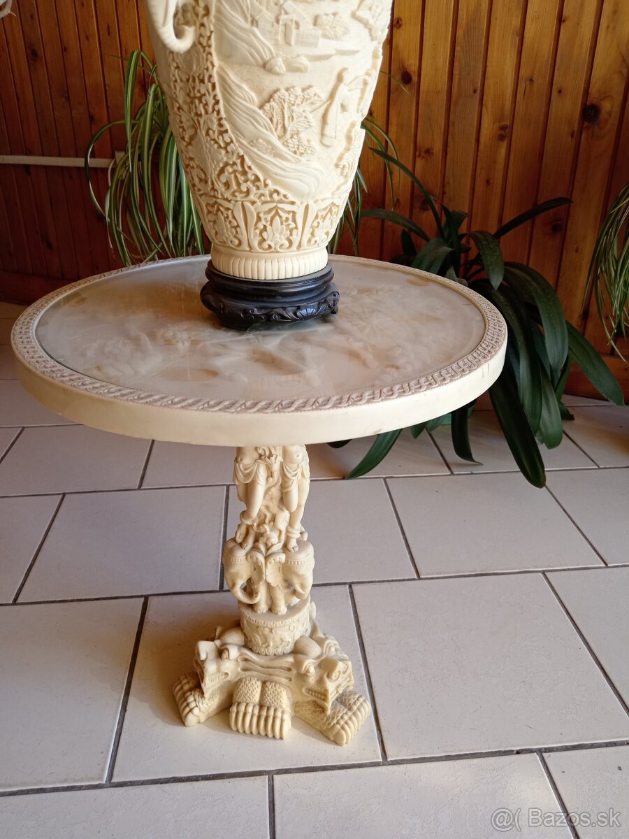 Predám vzácny starožitný stolik a vázu z umelého kameňa váži cca 13kg,Motív z ázijských krajín slonov, drakov, tanečnic...