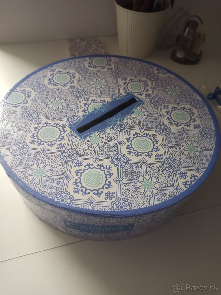 Predám krabicu na peniaze pre novomanželov 35cm priemer, 10 cm na výšku.