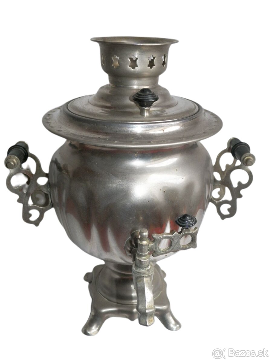 Starší samovar, poniklovaná mosaz, 220V - 1kw, včetně přívodního kabelu (nezkoušeno), výška 34 cm, dobírka Packeta 5,-€.