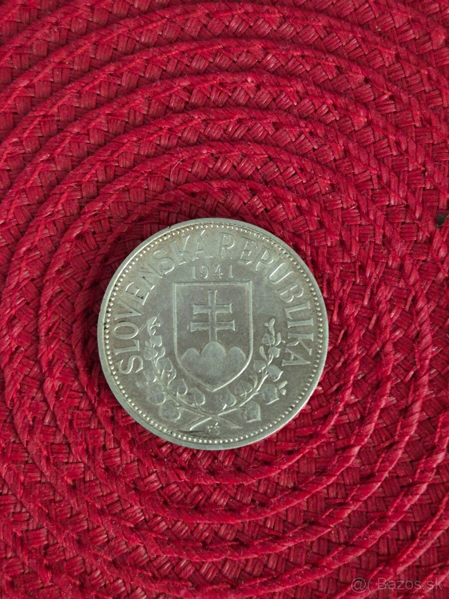 Predám striebornú mincu v hodnote 20 slovenských korún z roku 1941 s motívom Cyrila a Metoda.