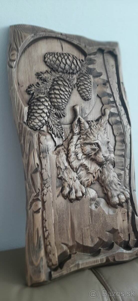 Drevený obraz vyrezávaný do masivneho dreva.Natier voskový olej.Pošlem na dobierku alebo kuriérom.