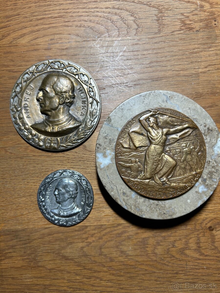 Niekto kto si chce urobiť radosť na Vianoce? 399€/komplet ponuka na dnes! 1. Pôvodná 8 cm medaila Andrej Hlinka 1939 - Ihrisky - postriebrena (punc), 2. Ťažidlo - Slovenské národné povstanie 1944 - Štefunko. 3. Pravdepodobne odliatok 5 cm varianty medaily Andrej Hlinka 1939 - materiál neviem.