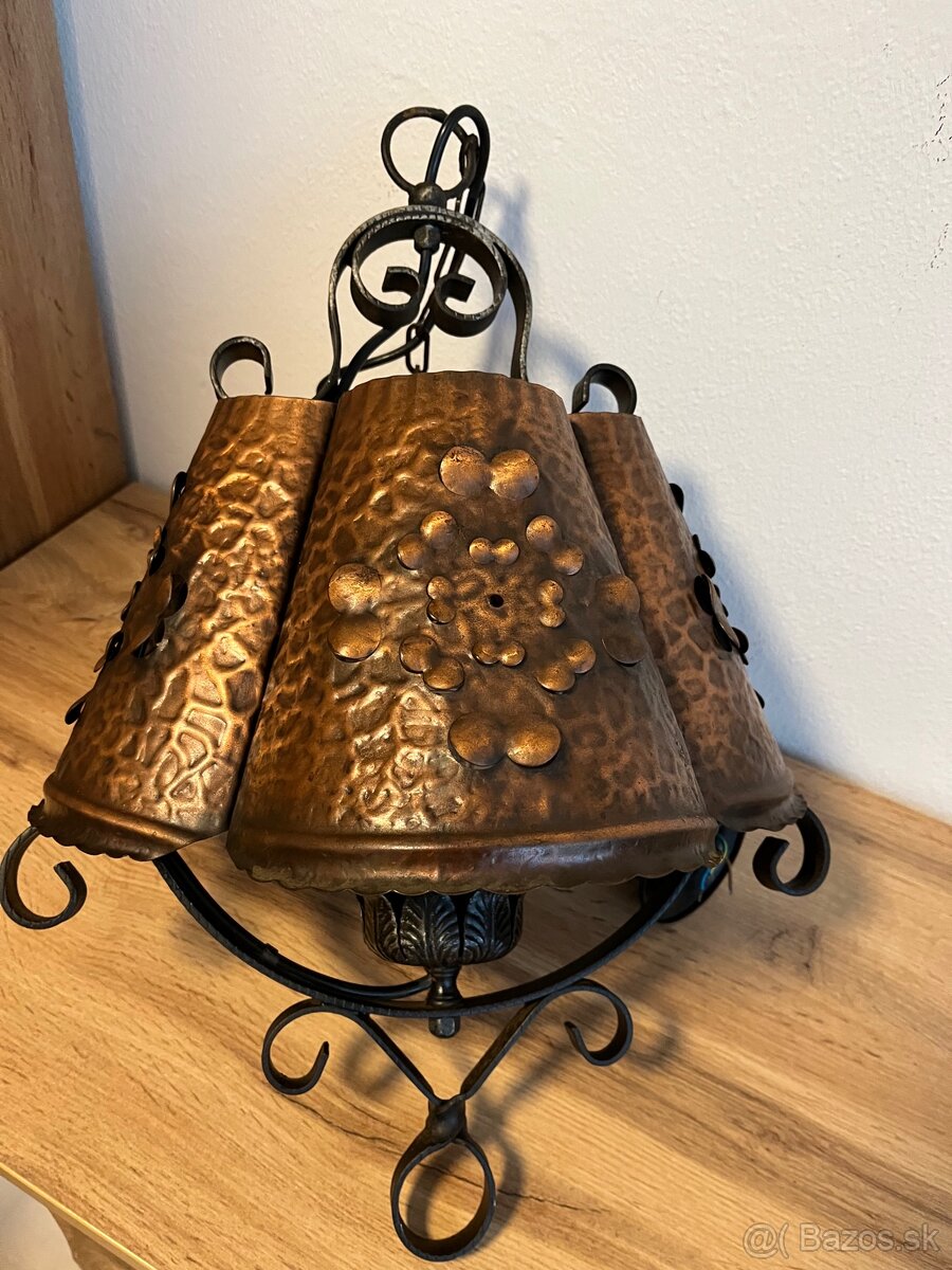 Predam tepany luster vhodný na chalupu. Masívne kovanie. Rozmery 35x113 (po skrátení reťaze celková vyska 64cm). Cca 50rocny. Svieti. Je na žiarovku s hrubým zavitom. Posielam aj na dobierku za +5,50€