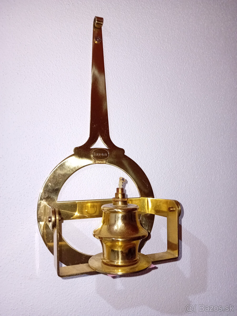 Predám peknú nástennú mosadznú petrolejovú lampu značenú "LUX DE DURIR 0073".