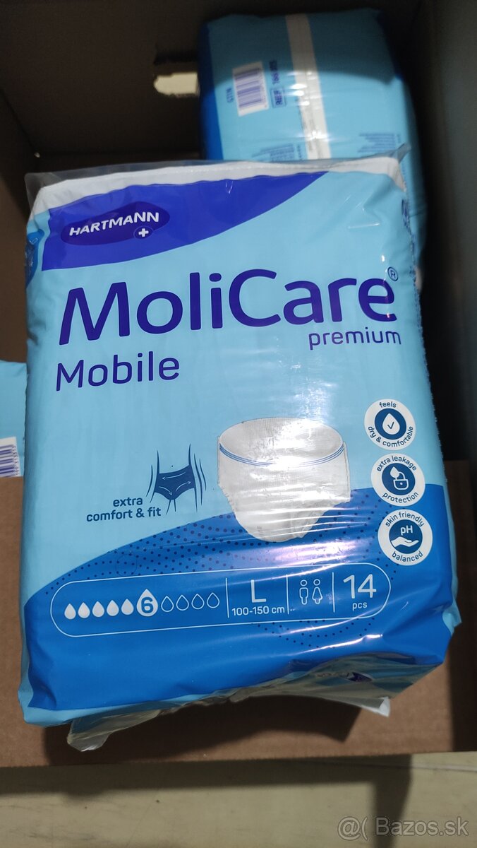 MoliCare Premium Mobile 8 kvapiek, navliekacie, 14ks - [14.12. 2025]Navliekacie plienkové nohavičky sú určené pre dospelých mobilných inkontinentných pacientov Veľkosť L (obvod bokov: 100 – 150 cm), savosť 8 kvapiek – 2279 ml