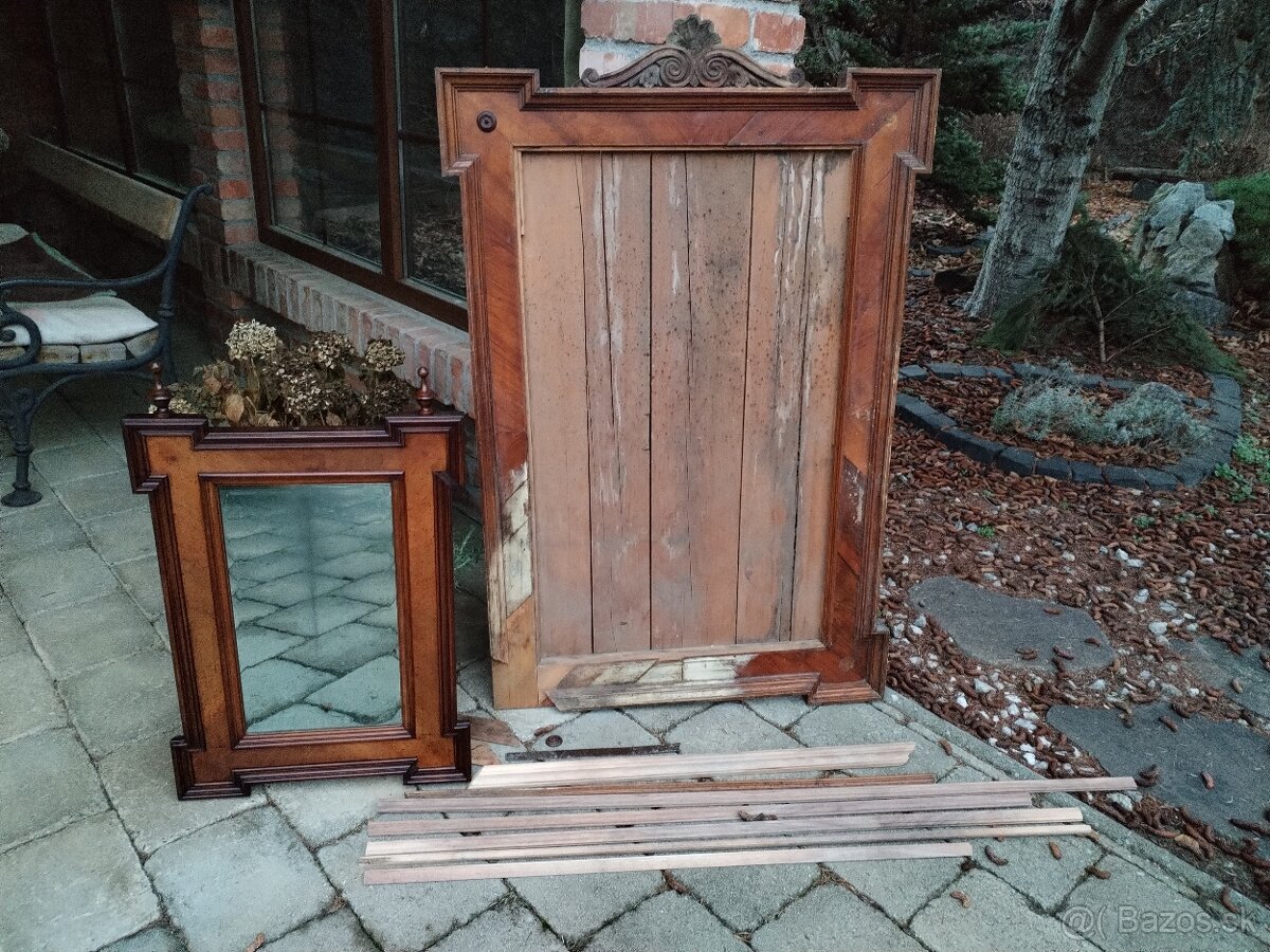 Predám menšie starožitné zrkadlo 67cm x 50cm Cena 55e +veľký rám na zrkadlo 126cm x 82,5cm vhodný na renováciu nové listy z orechového dreva Cena 80e
