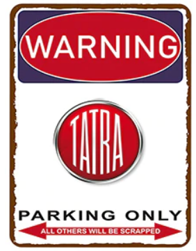 Plechová cedula "Výstraha parkovanie len TATRA " 30 X 20 cm.