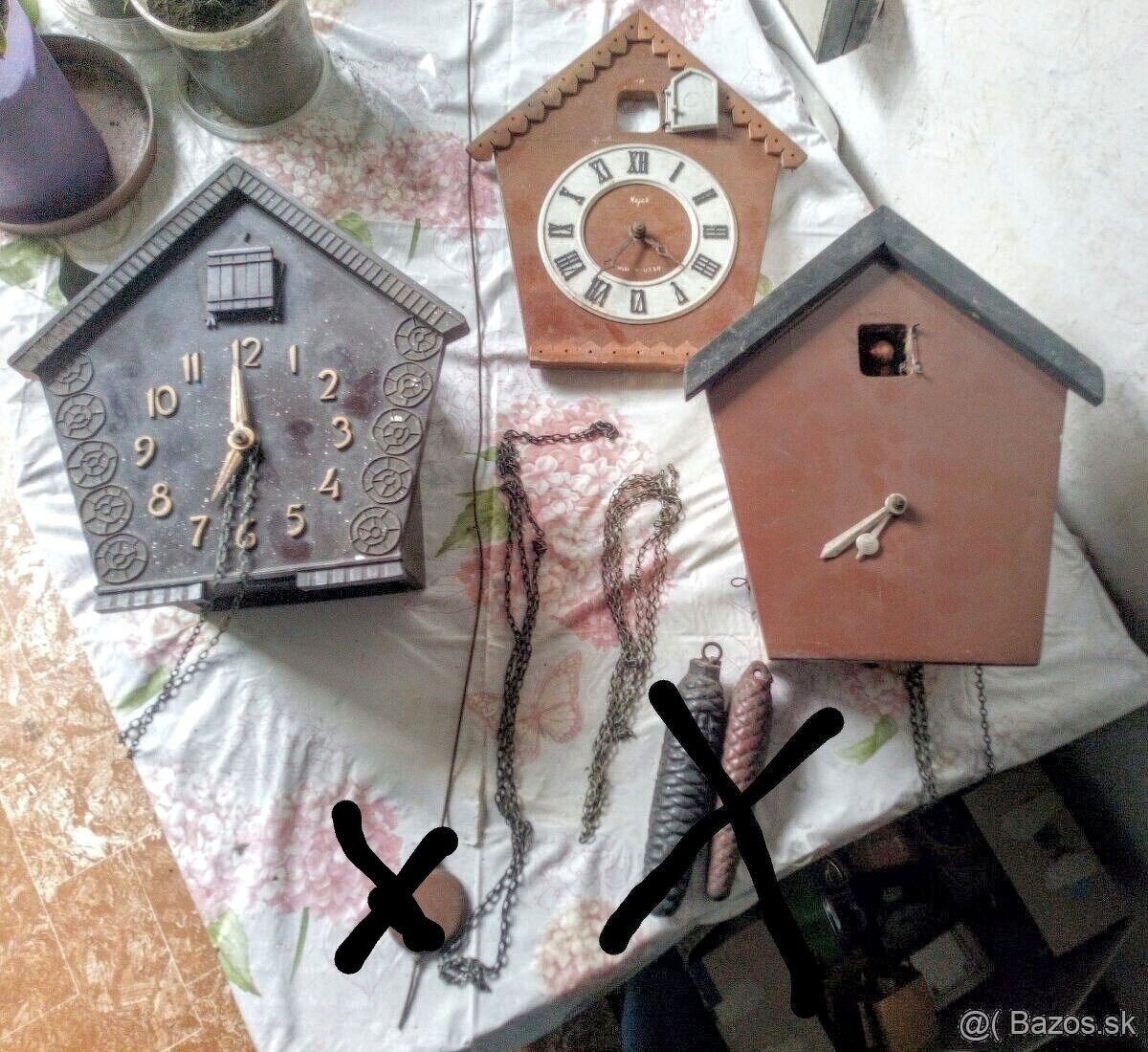 Predám , dva závažia , dve reťiazky, jeden predok s kukučiek , dvoje kukučiek , nefunkčných. Tie bez čísel nemajú zadný kryt.