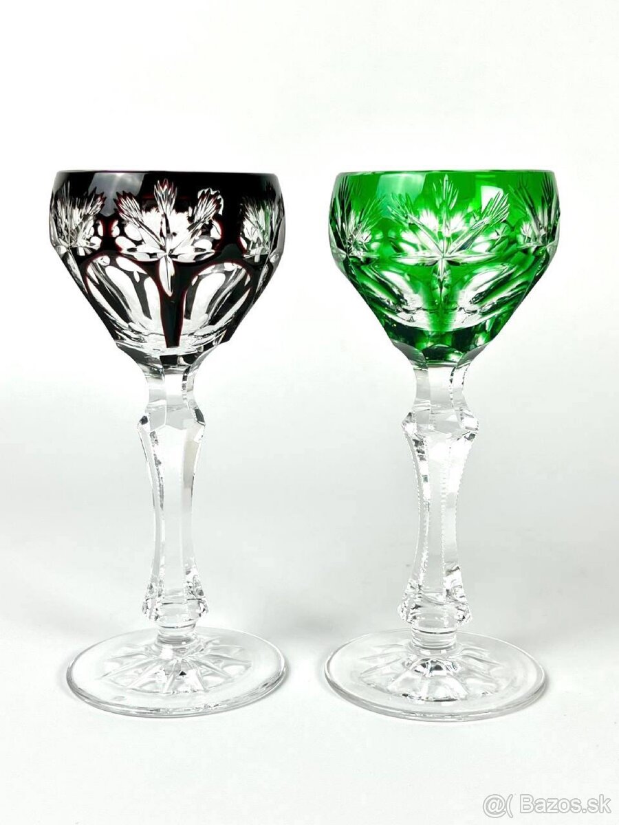 Píšte prosím na email. Vintage poháriky z farebného krištáľu rubínovej a smaragdovej farby, Tritschler Winterhalder, Nemecko.
