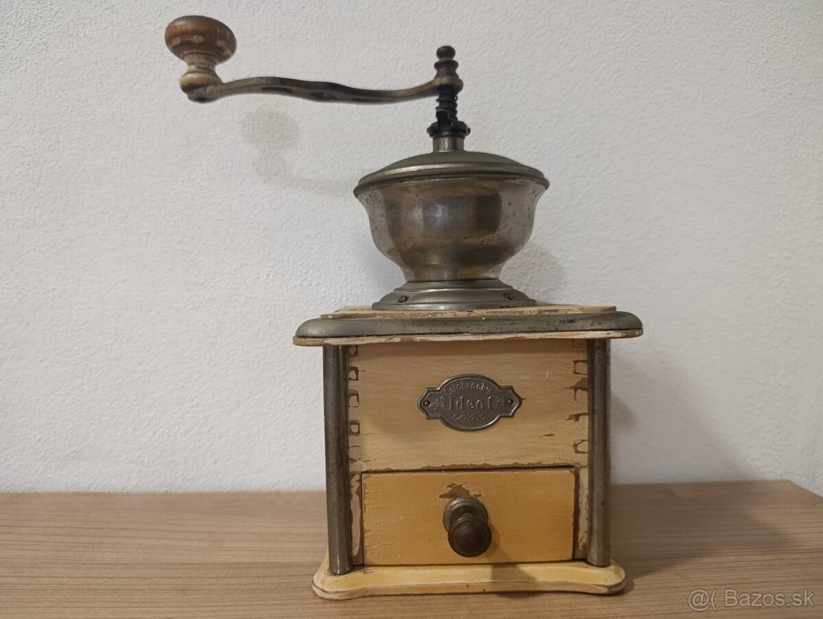 Starý mlýnek na kávu zn. Leinbrock Ideál se štítkom