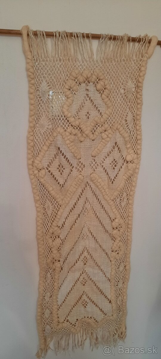 Predám pekné makrame, vhodné ako dekorácia. Dĺžka-110cm,šírka-35 cm. Farba béžová. Cena:39 eur