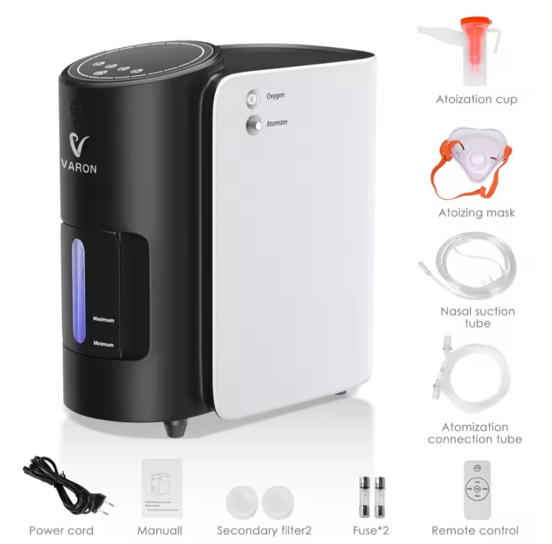Kyslíkový prístroj sa predáva aj s plným vybavením ako sú diaľkový ovládač, náhradné filtre napájací kábel, kyslíkové hadičky a oxi inhalátor