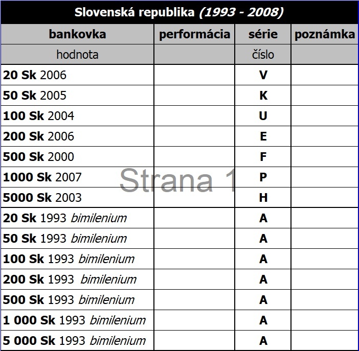 Bankovky - Slovenská republika (1993-2008)