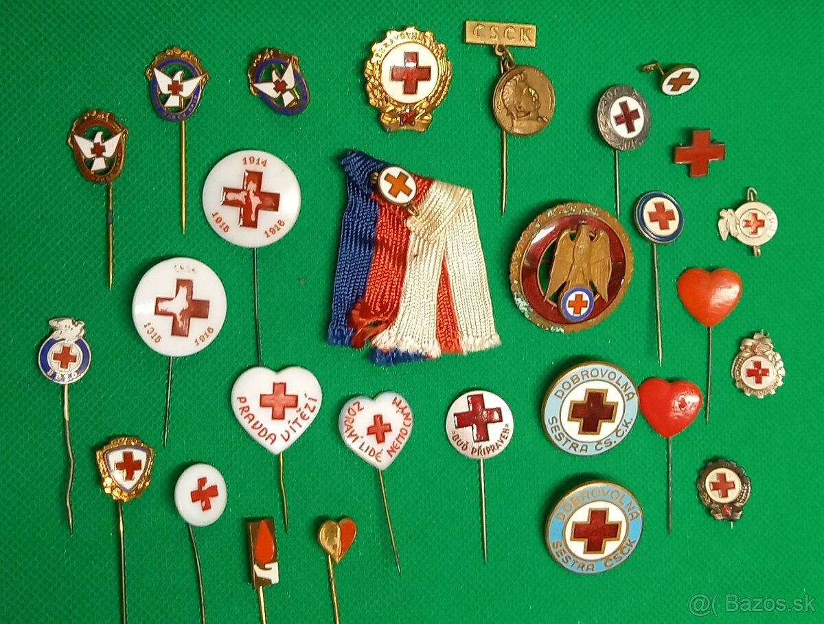 odznaky ČERVENÉHO KRÍŽA z obdobia Rakúsko-uhorskej monarchie, 1. Česko-Slovenskej republiky, Slovenského Štátu a aj z Československej socialistickej republiky.