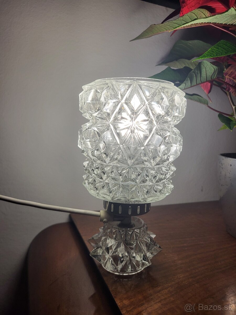 Sklenená stolná lampa z 60. alebo 70. rokov, ktorá dodá vášmu interiéru nadčasový retro šarm.