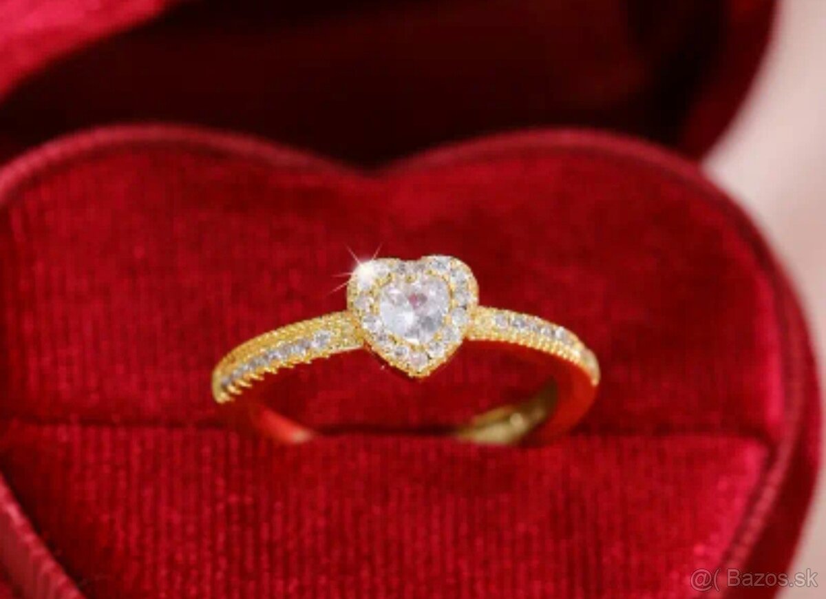Predám 1 ks elegantného prsteňa v tvare srdca. Vyrobený z pozlátenej medi, osadený kubickými zirkónmi – krásny, trblietavý kúsok vhodný ako zásnubný alebo darčekový šperk.