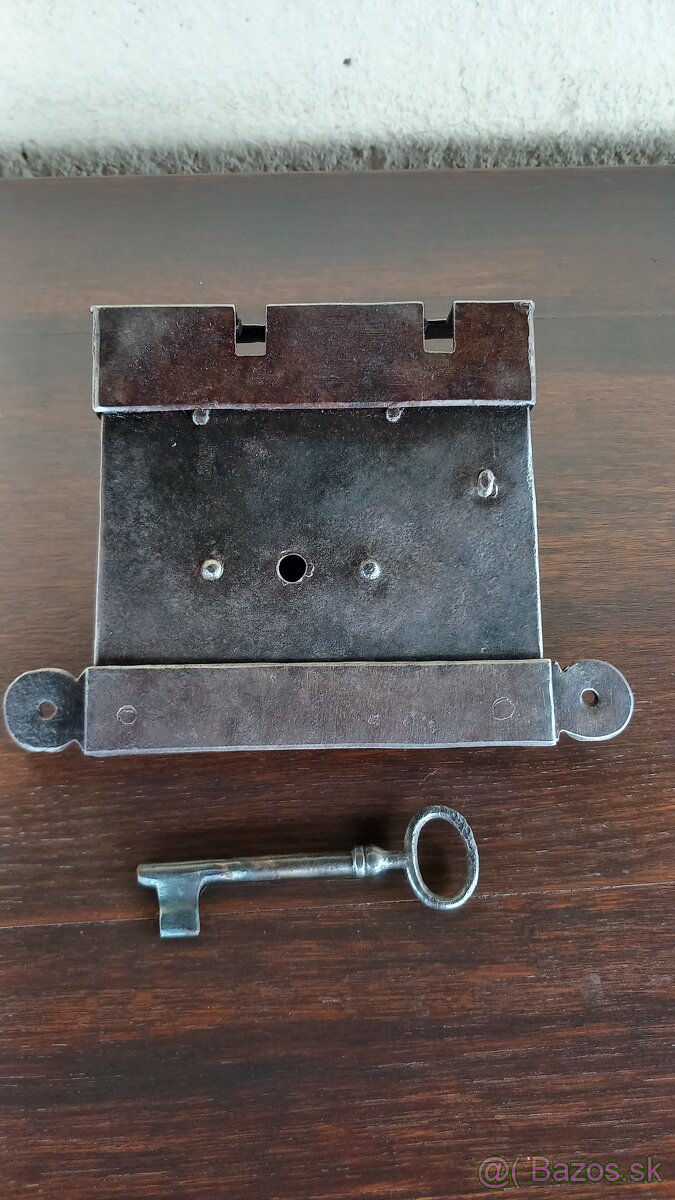 Predám starožitný kuvaný zámok na truhlicu,obdobie 1850-1900,funkčný,s jedným kľúčom,