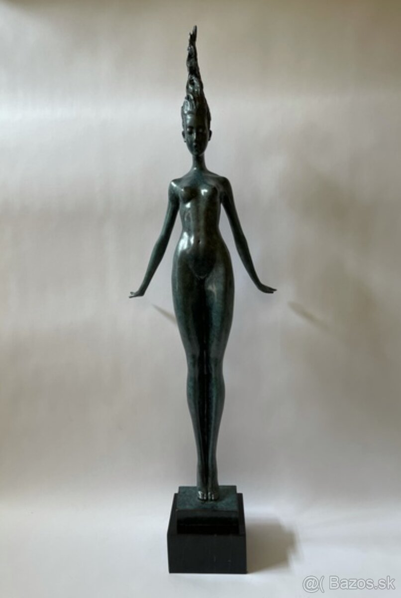 Bronzová socha na mramorovem podstavci, AKT moderna, výška 101 cm.