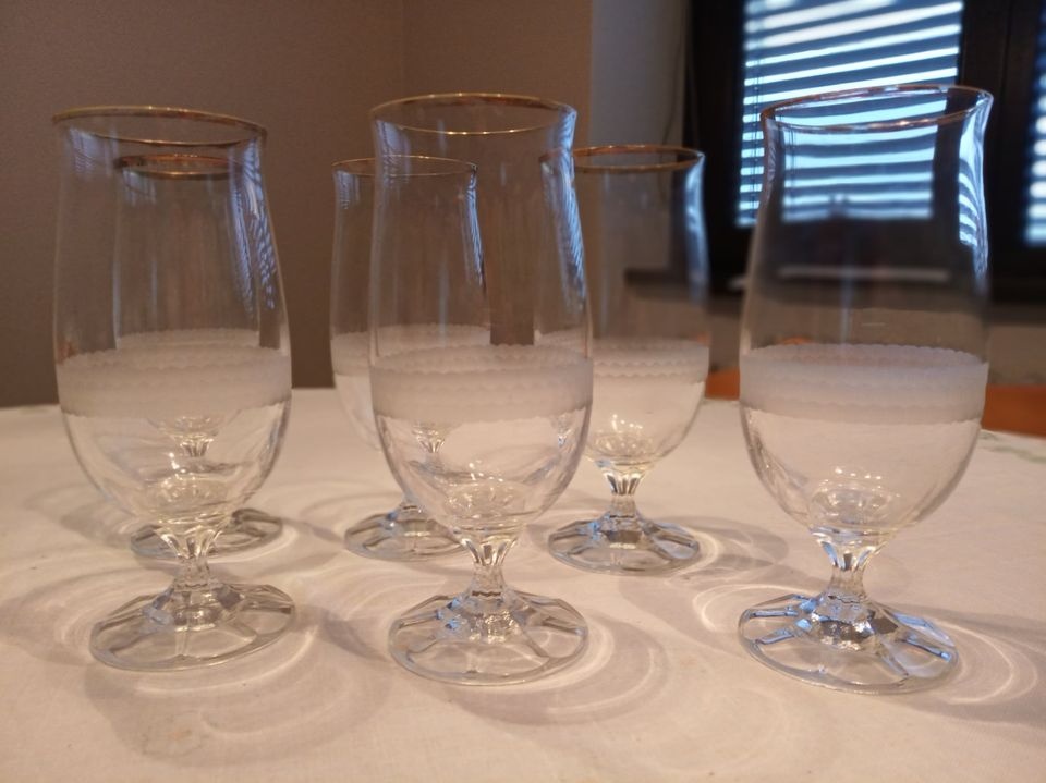 Dobrý deň, ponúkam na predaj sadu 6 pohárov na stopke. Poháre majú zlatý pásik na vrchu, ktorý je viditeľne ošúchaný. Inak sú poháre v dobrom stave.