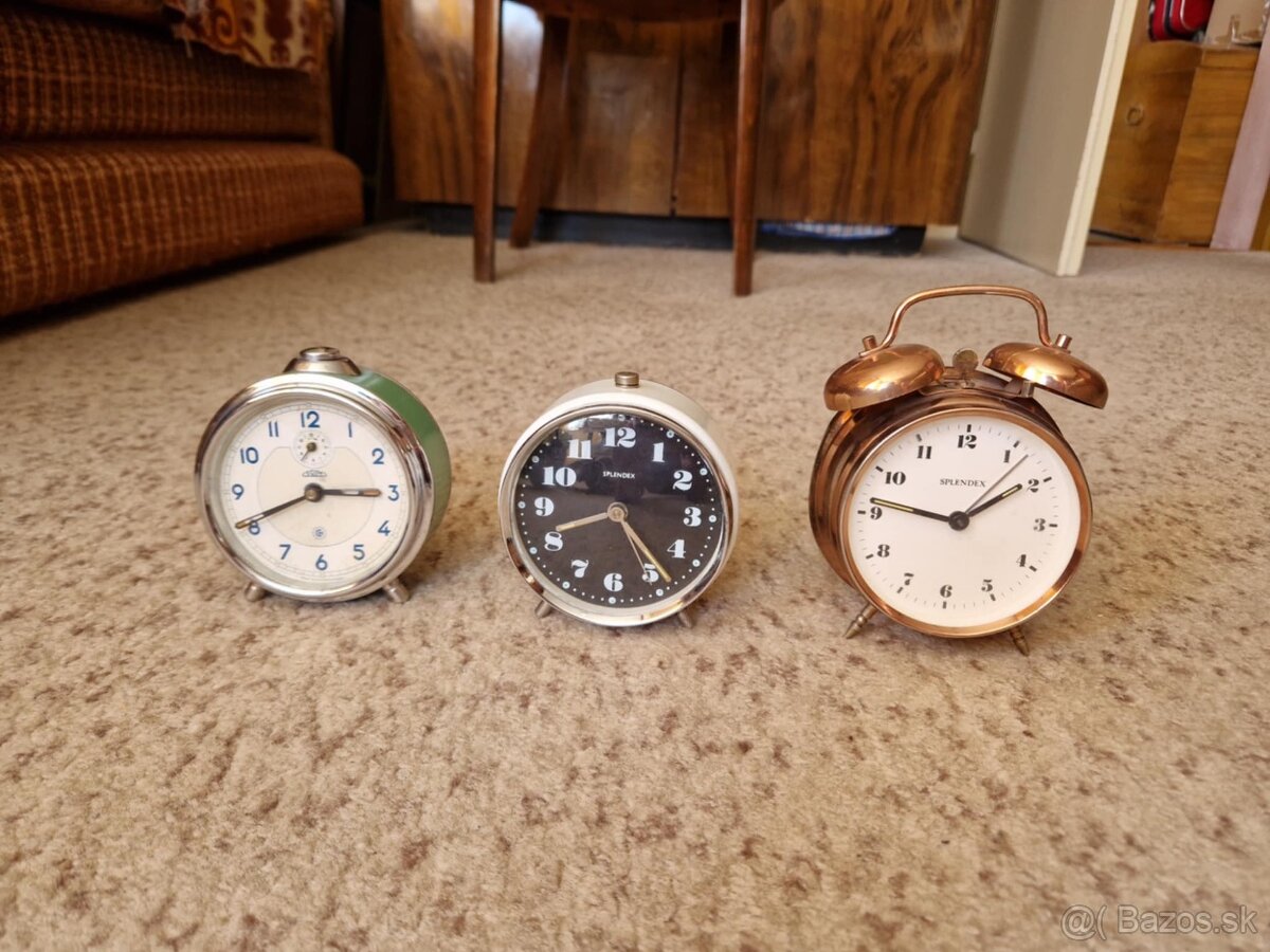 Starozitne mechanicke budiky Prim a Splendex. Povodny stav. Po natiahnuti nejaky cas idu aj zazvonia. Ale kedze ide o povodny stav tak by som sa na ich funkcnost nespoliehala. Cena spolu 35eur. Iba osobny odber RK