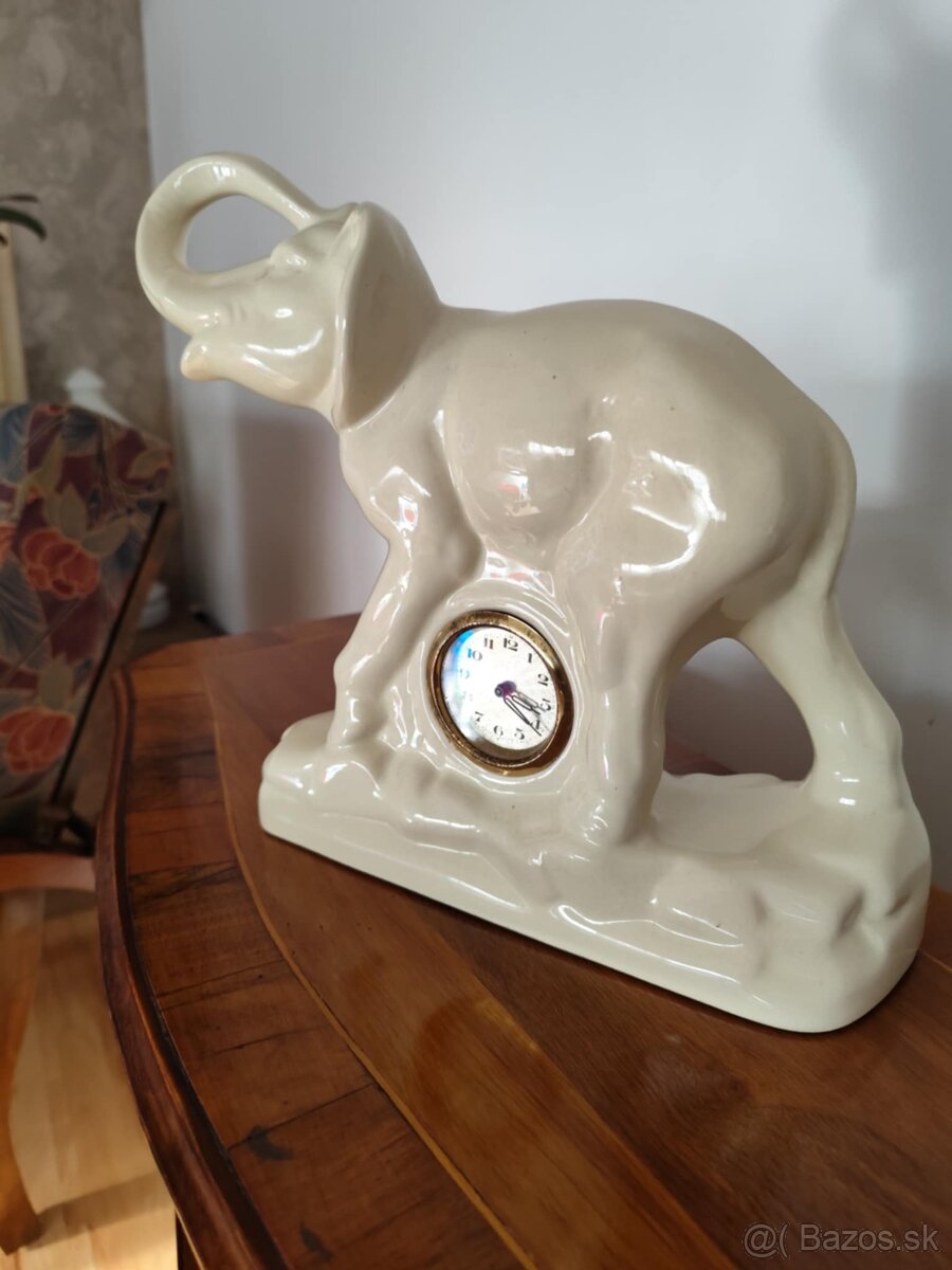 Na predaj je vintage keramická figúrka slona, ktorá slúži aj ako stolové hodiny. Tento kúsok je ideálnym doplnkom pre milovníkov zvieracích motívov a retro dekorácií.