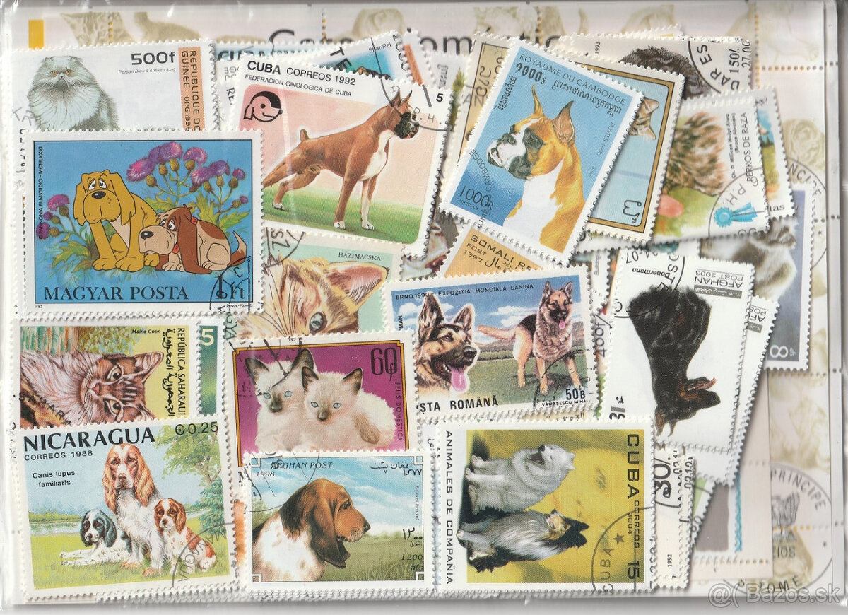 Balíček známok s tematikou Fauna (Zvieratá), ale pozor, len mačky a psy