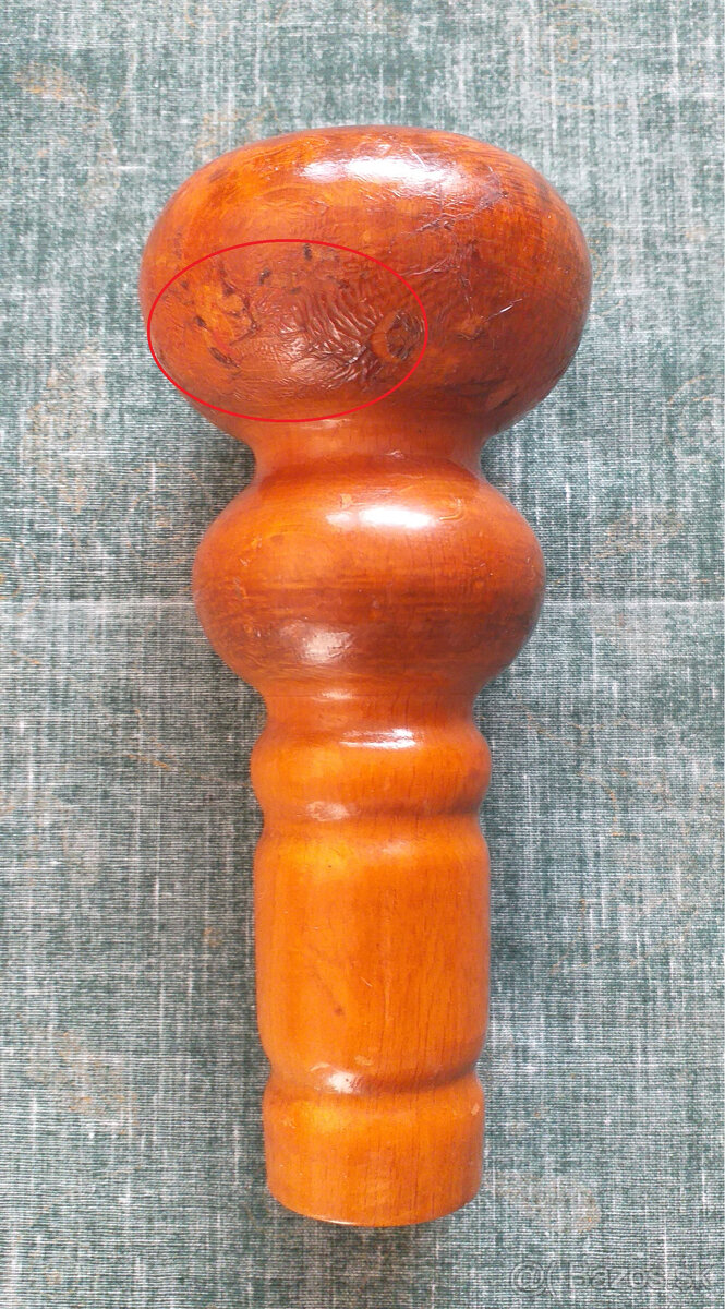 Sústružená a lakovaná. Menšie chyby lakovania (a špiny) mám označené s červenou farbou.