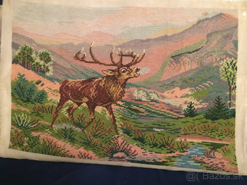 PREDAM RUCNE VYSIVANY GOBELIN : ZATISIE S JELENOM, rozmery 53 x 36 cm, nezaramovany