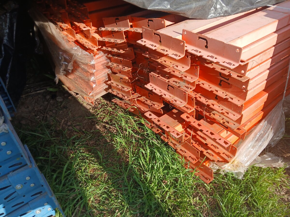 Predam paletový regal, šírka 1100mm - da sa upravit podla potreby, výška je viac moznosti aj sa da skratit. Dĺžka nosníka 2.7m, vyska 13 cm nosnost cez 2tony.Cena nosnik 15 eur kus. Nohy 10 eur meter + skrutky a doplnky.Ramy su rozobrate a treba ich zlozit podla vlastnej potreby ! Kontaktujte ma prosím mailom odpoviem rýchlo.
