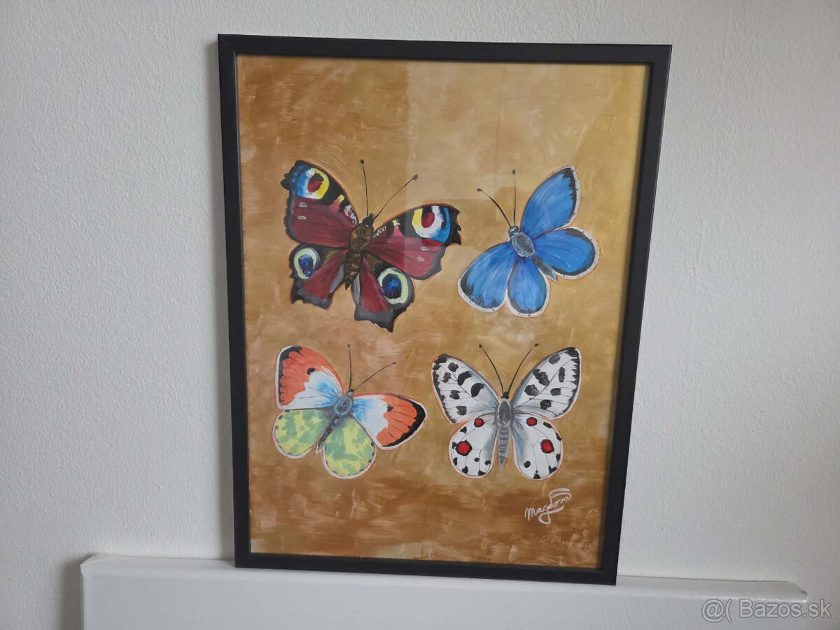 Výnimočný darček na Vianoce? Originál akryl na akvarelovom papieri, rámik rozmer 30x40cm, cena 50€, motív : Motýle. Jedinečný motív, ktorý oživí Váš interiér. Ideálne osobný odber v Žiline, alebo po dohode je možne zaslať aj na dobierku