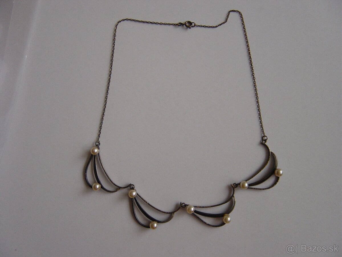 nahrdelnik striebro s perličkami, vaha šperku 14,7g, tepany pozlateny, z roku 1967 cena 90eur