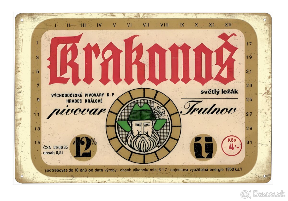 plechová cedule - Krakonoš 12° (dobová pivní etiketa)