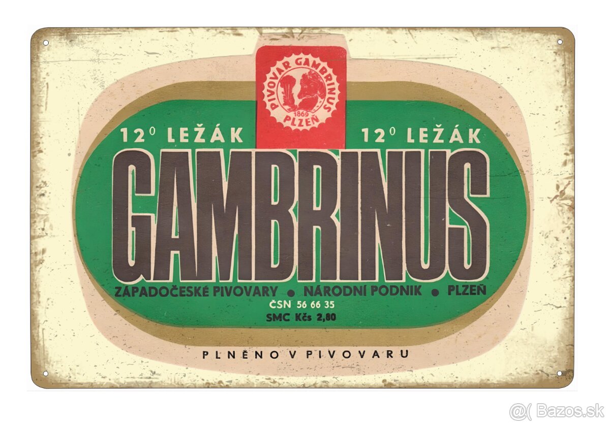 plechová cedule - Gambrinus 12° (dobová pivní etiketa)